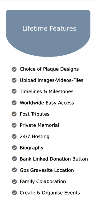 Welcome to the Charles Russell Ceremonies Legacy platform, the premier platform for commemorating and preserving the Legacy of both the departed and the living. With a commitment to honoring life's journey, we offer an array of services that go beyond the traditional. For those looking to encapsulate their life's journey, our user-friendly historical timelines provide a seamless way to capture and visualise all your most cherished memories. Whether it's the milestones that shaped your story or the everyday moments that brought joy, our platform ensures that no memory is left behind. Not only do we prioritise the security and privacy of your memories, but we also understand the importance of easy sharing. That's why each personalised, ad-free webpage comes with its own uniquely generated QR code engraved onto a plaque of your choosing. Effortlessly share your memories with friends and family, ensuring that your legacy continues to inspire and uplift future generations. In addition to preserving memories, we offer practical solutions to simplify the process of managing a commemorative page. Receive donations without the burden of commissions, safeguard your cherished moments with password protection for private viewing, and seamlessly organise events to honor and celebrate the lives of your loved ones. With our precise location services, finding gravesites becomes a hassle-free experience, allowing you to pay respects with pinpoint accuracy.